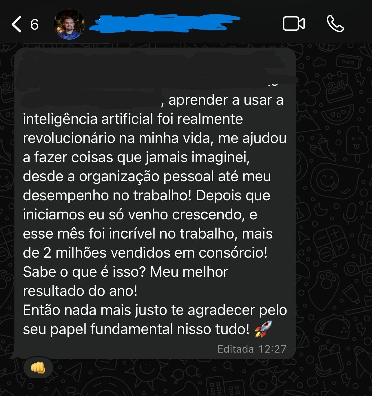 Hoje, com mais de 400 alunos e dezenas de empresas atendidas, ensina o que funciona: vender mais usando IA de forma simples e prática.